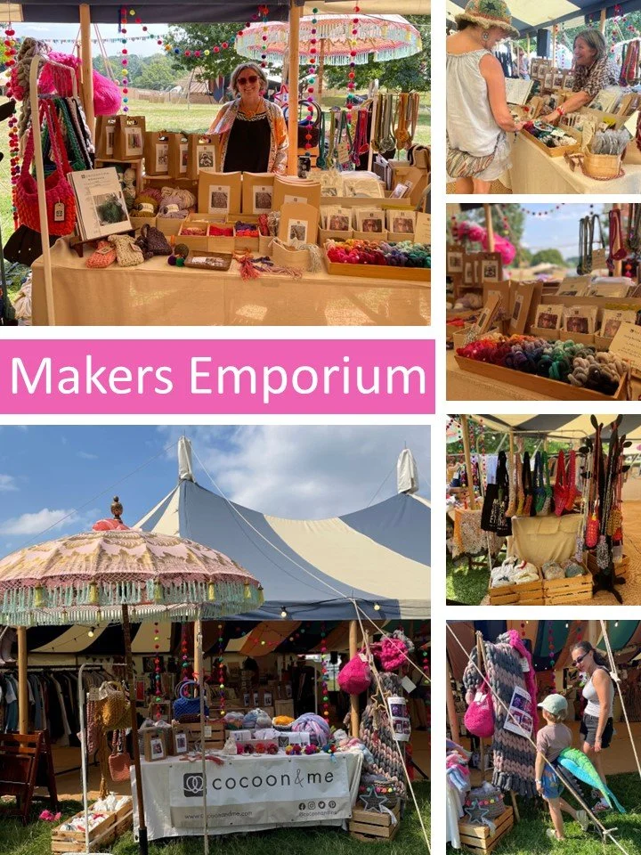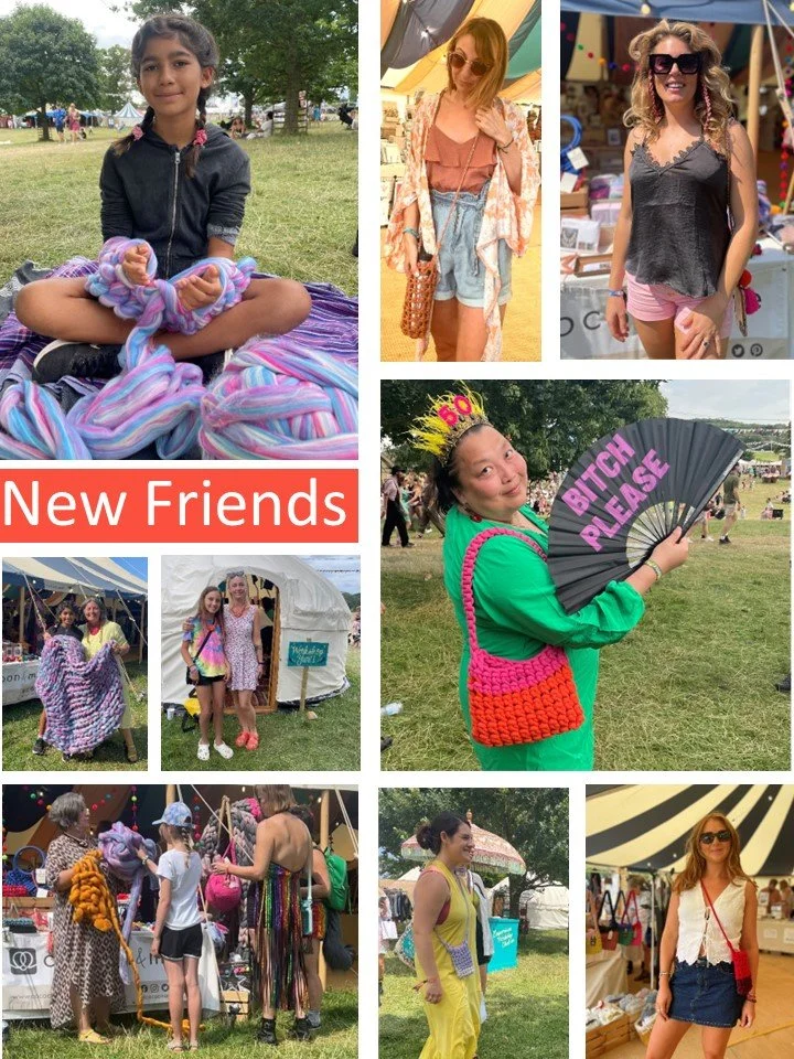 The festival had something for everyone in a family-friendly atmosphere. It was a great opportunity to have our Kits on display, something we are well known for, but it also gave Paula a chance to craft some products specifically for a festival crowd, selling out of our Crochet Bottle bags & Festival Pouches!