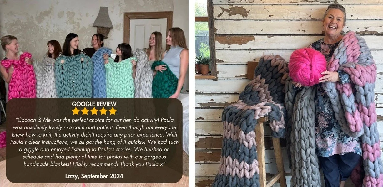 Founded by Brighton’s own Paula Clark in 2017, Cocoon&me is all about unleashing creativity, sparking joy, & bringing people together. Our family-run business offers hands-on workshops where you can Arm knit a chunky blanket (yes, using your Arms as needles!) create a Macramé dog lead, or Crochet a stylish basket - all in a fun, welcoming atmosphere.